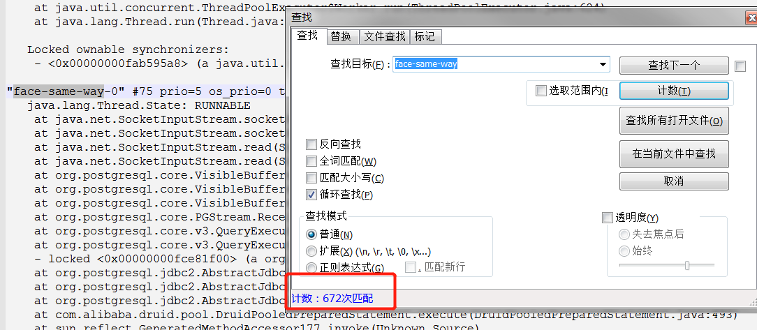 解决java.lang.OutOfMemoryError: unable to create new native thread 原创 2021-04-08 10:40:19.0 阅读(3373)次 #### 异常问题 项目并发测试一个功能时报创建不了本地线程,如下: ``` Caused by: java.lang.OutOfMemoryError: unable to create new native thread at java.lang.Thread.start0(Native Method) at java.lang.Thread.start(Thread.java:717) at java.util.concurrent.ThreadPoolExecutor.addWorker(ThreadPoolExecutor.java:957) at java.util.concurrent.ThreadPoolExecutor.execute(ThreadPoolExecutor.java:1367) at java.util.concurrent.AbstractExecutorService.submit(AbstractExecutorService.java:134) at cn.com.datu.search.impl.AccompanyPersonSearchImpl.initFaceSameWayList(AccompanyPersonSearchImpl.java:113) at cn.com.datu.service.impl.ResultRecordServiceImpl.queryFaceSameWayDataList(ResultRecordServiceImpl.java:444) at cn.com.datu.controller.FaceSameWayController.query(FaceSameWayController.java:119) at sun.reflect.GeneratedMethodAccessor221.invoke(Unknown Source) at sun.reflect.DelegatingMethodAccessorImpl.invoke(DelegatingMethodAccessorImpl.java:43) at java.lang.reflect.Method.invoke(Method.java:498) at org.springframework.web.method.support.InvocableHandlerMethod.doInvoke(InvocableHandlerMethod.java:209) at org.springframework.web.method.support.InvocableHandlerMethod.invokeForRequest(InvocableHandlerMethod.java:136) at org.springframework.web.servlet.mvc.method.annotation.ServletInvocableHandlerMethod.invokeAndHandle(ServletInvocableHandlerMethod.java:102) at org.springframework.web.servlet.mvc.method.annotation.RequestMappingHandlerAdapter.invokeHandlerMethod(RequestMappingHandlerAdapter.java:877) at org.springframework.web.servlet.mvc.method.annotation.RequestMappingHandlerAdapter.handleInternal(RequestMappingHandlerAdapter.java:783) at org.springframework.web.servlet.mvc.method.AbstractHandlerMethodAdapter.handle(AbstractHandlerMethodAdapter.java:87) at org.springframework.web.servlet.DispatcherServlet.doDispatch(DispatcherServlet.java:991) ... 59 common frames omitted ``` #### 解决过程 看到OutOfMemoryError,我们就会想到内存不足,但是项目里的这个功能应该吃不了太多内存,主要是数据库操作。 再看unable to create new native thread,难道是线程栈内存给高了?看了下项目启动的内存配置信息,如下: ``` -Xms2048m -Xmx2048m -Xss512K ``` -Xss也只给了512,应该不大啊。没有解决问题的头绪。 这个功能是我一个同事开发的,并不是我,我只好硬着头再看看对应的代码,发现代码里每次HTTP请过来都会创建一个线程池来处理这次请求,问了同事才知道这是为了加快处理请求而加上了多线程处理。 看了下每次请求会创建线程数为30的线程池,并发请求10就是10*30个线程会被创建出来。占用内存只有150MB左右,应该不是内存不够的问题。 我将他线程池改为10个线程(原先30个),再用10并发请求测试一下,发现持续并发一会还是会报创建不了线程。应该是有什么其他问题影响了。 再想了下线程跟文件句柄有关,看了下docker里的最大打开文件数,再看看宿主机的打开文件数配置,都还正常。(我们项目运行在K8s上面)  如上图所示,open files数字还挺大的,我们这个测试场景达不到这么高,所以也排除系统参数问题。 这时只好在并发测试过程中,使用jstack命令将jvm线程信息导出定位问题了。 由于测试刚开始不会报错,需要持续2分钟左右才会报创建不了本地线程,所以我用jstack在这2分钟中内分别导出了4份线程栈信息,命令如下: ```shell jstack -l 1 > /jstack1.txt ``` 然后叫运维把这4份日志从容器中复制出来给我,我统计了下并发测试的功能线程池对应的线程数最高的日志中居然有600多个,按理说10个并发乘以一个池10个线程数总线程数量不会超过100个啊,这怎么是600多个!!  当然也可以用如下简单命令查看对应线程数量,前提是线程池取了对应名称,统计jvm中业务线程命令如下: ```shell jstack -l 1 > /jstack.txt && grep -o "线程名" /jstack.txt | wc -l ``` 所以问题已经很明显了,应该是线程没有被正常回收,有泄漏。 再看看同事写的线程池代码,如下: ```java //创建线程池 ThreadFactory factory = new ThreadFactoryBuilder().setNameFormat("face-same-way-%d").build(); ThreadPoolExecutor executor = new ThreadPoolExecutor(accompanyPersonThread, accompanyPersonThread, 0, TimeUnit.SECONDS, new LinkedBlockingQueue(1024),factory); List> threadList = new ArrayList<>(); for (int i = 0; i < dateList.size(); i++) { ... //提交任务 threadList.add(executor.submit(new AccompanyPersonAnalysisThread(dto))); } for (Future future : threadList) { future.get(30, TimeUnit.SECONDS); } threadList.clear(); ``` 这时我才顿悟,线程池没有shutdown!! 如果不shutdown,不主动关闭线程池的话,池里会有些休眠的线程,通常会在1分钟以后再被关掉,然后就出现了上面的从100个线程慢慢堆积到了600个线程了。 修改代码,加上shutdown: ```java executor.shutdown(); while (!executor.isTerminated()) { TimeUnit.MILLISECONDS.sleep(100L); } ``` 再用10个和30个并发都不会再出现无法创建线程了。 java 异常处理 jvm 上一篇:postgresql数据库表分区字段有必要创建索引么? 下一篇:LinkedBlockingQueue实现定长队列自动出队与读取队列