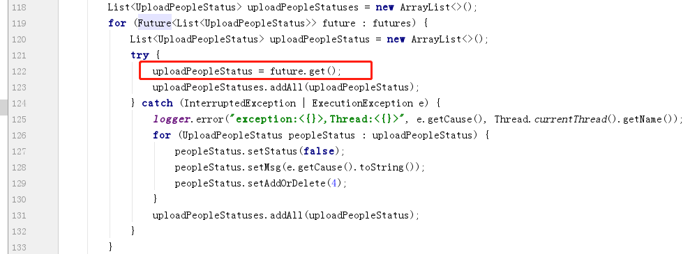 java程序员多线程常见的代码bug 原创 2022-07-03 09:36:41.0 阅读(1657)次 **目录** [TOC] #### 前言 这篇文章主要用来记录我所收集的一些多线程环境下,java程序员常见的或者说容易忽视的、重要的、容易产生bug的代码样例,以此来加深自己对这些场景代码的印象,让我们一起少掉坑。文章会陆续更新,尽自己能力收集更多的样例。 #### CountDownLatch的错误使用 ```java CountDownLatch countDownLatch = new CountDownLatch(voGroupByBucketName.size()); for (......) { executorService.submit(() -> { try { xxxxxxx //countDownLatch.countDown(); } catch (Exception e) { ... } finally { countDownLatch.countDown(); } }); } countDownLatch.await(); ``` 上面的countDownLatch.countDown();经常有人不写到finally代码块中,造成executorService线程池报错后主线程意外假死,因为程序报错后countDownLatch.countDown()没有被执行,主线程一直await #### 使用Executors.newCachedThreadPool()创建线程来处理大量任务 ```java ExecutorService executorService = Executors.newCachedThreadPool(); ``` 由于newCachedThreadPool()创建线程池,如果有任务进入需要拿线程来处理任务,默认会从线程池的缓存中拿,如果没有就会创建新的线程,如果有大量任务需要被执行,那么newCachedThreadPool()的方式就会创建出大量的线程,造成java内存溢出或线程不够用了,所以建议最好还是用固定大小的线程池,这里也给出代码样例,如下: ```java ThreadFactory factory = new ThreadFactoryBuilder().setNameFormat("task-%d").build(); ExecutorService executorService = new ThreadPoolExecutor(20, 20,0, TimeUnit.SECONDS, new LinkedBlockingQueue(100),factory,new ThreadPoolExecutor.CallerRunsPolicy()); ``` ####线程池不设置队列大小或者设置很大的队列大小 ```java ThreadFactory factory = new ThreadFactoryBuilder().setNameFormat("task-%d").build(); ExecutorService executorService = new ThreadPoolExecutor(20, 20,0, TimeUnit.SECONDS, new LinkedBlockingQueue<>(),factory,new ThreadPoolExecutor.CallerRunsPolicy()); ``` 上面的new LinkedBlockingQueue<>()队列没有限制长度,在线程处理不过来的情况下会可能会堆积大量任务数据,造成内存溢出,我们应该设置合理的队列大小,正确的写法参考上一个问题的示例。 #### 使用Future来取线程池返回值时,Future.get()异常后取不到返回值问题 一直以为我都以为Future.get()跟Thread的run()方法一样会自己处理掉异常,然而并不是,这个问题还是很容易就犯错,如下代码:  图中122行代码get可能会报错,造成里面的List uploadPeopleStatus赋值不到,于是数据就丢失了,业务的要求应该是报错也要把里面的数据返回,于是要求我们正确的做法应该是线程里面要try catch异常并把数据返回。 #### 多线程共享变量之List.add()与clear()并发原子性问题 我们都知道CopyOnWriteArrayList是线程安全的List实现,所以在并发下执行add()方法是不会有并发问题的,但是如果在并发下又同时执行clear(),这时候就会出现并发问题了,因为这两者同时执行时并不是原子性的,需要我们代码加锁,举个例子,我看到的同事用disruptor来做并发处理业务,在他的EventHandler的方法中,有并发问题的代码如下: ```java protected List xxxList = new CopyOnWriteArrayList<>(BATCH_SIZE); @Override public void onEvent(EVENT event, long sequence, boolean endOfBatch) throws Exception { VALUE value = getValue(event); xxxList.add(value); if(xxxList.size() == BATCH_SIZE){ doBatchHandle(xxxList); xxxList.clear(); } if(endOfBatch && !xxxList.isEmpty()){ doBatchHandle(xxxList); xxxList.clear(); } } ``` 其中xxxList.add和xxxList.clear并发执行时就可能出问题了,正确的做法就是代码加锁,如下: ```java protected List xxxList = new CopyOnWriteArrayList<>(BATCH_SIZE); @Override public void onEvent(EVENT event, long sequence, boolean endOfBatch) throws Exception { VALUE value = getValue(event); synchronized (xxxList){ xxxList.add(value); if(xxxList.size() == BATCH_SIZE){ doBatchHandle(xxxList); xxxList.clear(); } if(endOfBatch && !xxxList.isEmpty()){ doBatchHandle(xxxList); xxxList.clear(); } } } ``` java java基础 上一篇:clickhouse删除数据时报错 下一篇:java阻塞的线程安全的优先级队列PriorityBlockingQueue